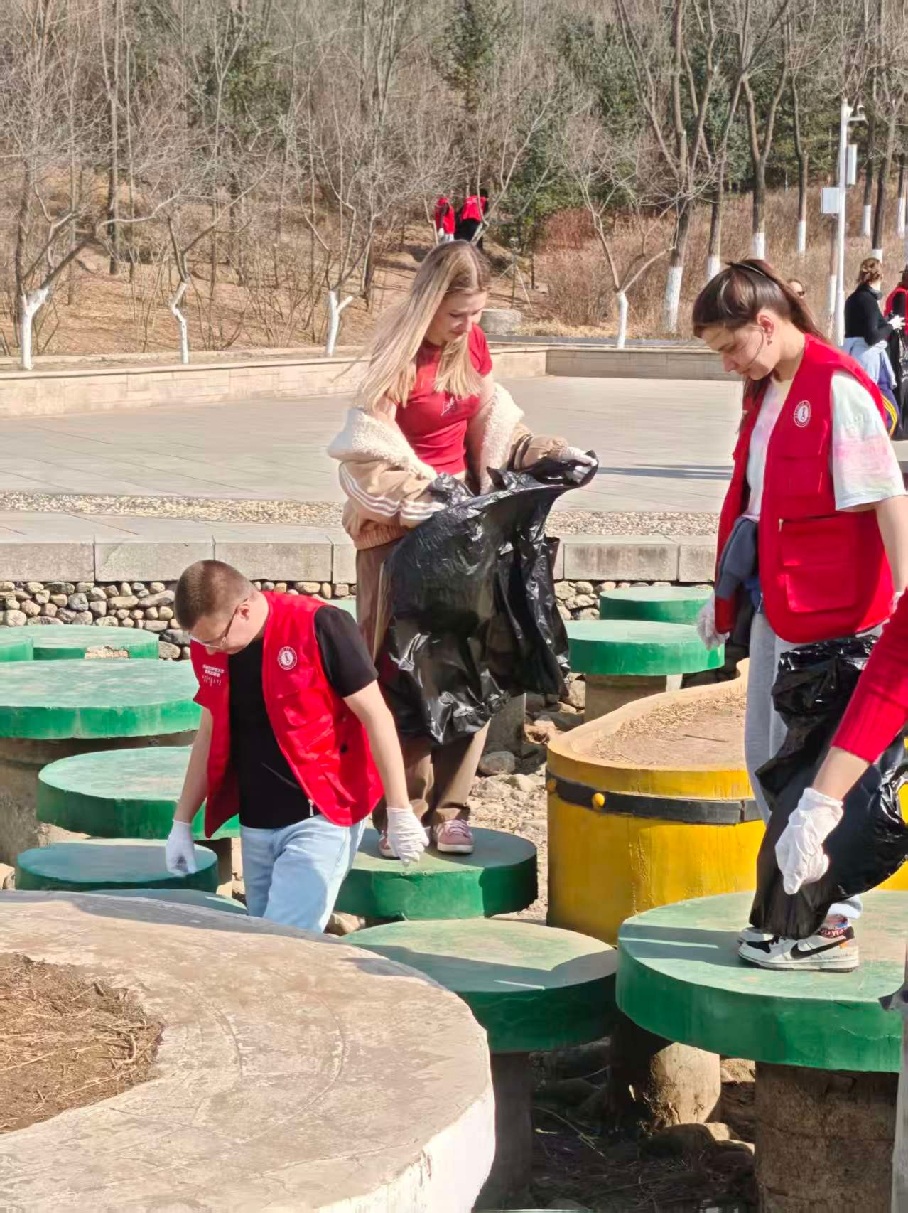 在成吉思汗公园沿线,外籍员工化身“公园美容师”,捡拾垃圾、美化环境,用实际行动践行爱护环境、无私奉献的雷锋精神。多国青年携手劳动,既传递绿色理念,也增进跨文化理解与共鸣。